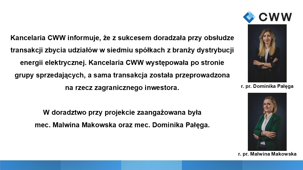 Kancelaria CWW doradzała przy zbyciu spółek OSD